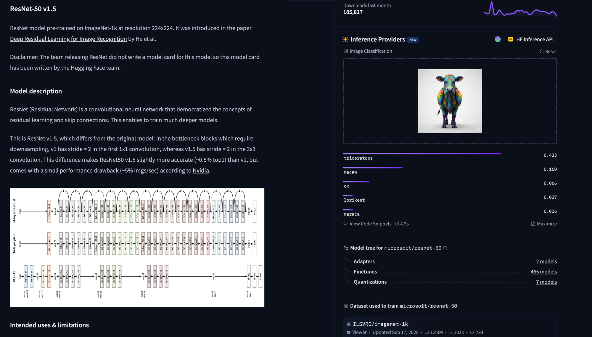 Imagine you're trying to identify a building from a photograph. A CNN is like an inspector who starts by examining individual bricks, then notices the windows, then the floors, and after many steps, finally puts together that it's a Gothic cathedral. A Vision Transformer is like someone standing across the street who immediately sees the whole building, notices the pointed arches relate to the flying buttresses, sees how the rose window connects to the overall facade, and says "Gothic cathedral" right away. Neither approach is wrong, they just prioritize different types of information. In our case, it is neither a cow/ox nor a macaw.